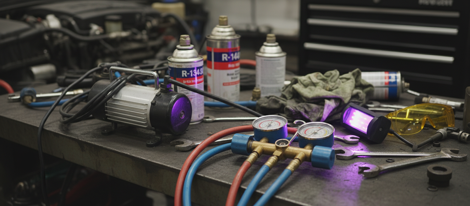 Obsługujemy i naprawiamy układy w samochodach osobowych i dostawczych z czynnikiem R134a i R1234YF.